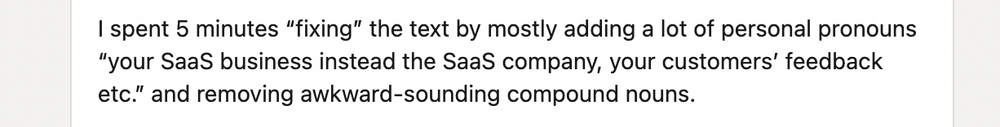 I decided to take another 54 seconds to also improve sentence structure, and I made a couple of other tiny changes to improve the credibility of the piece.