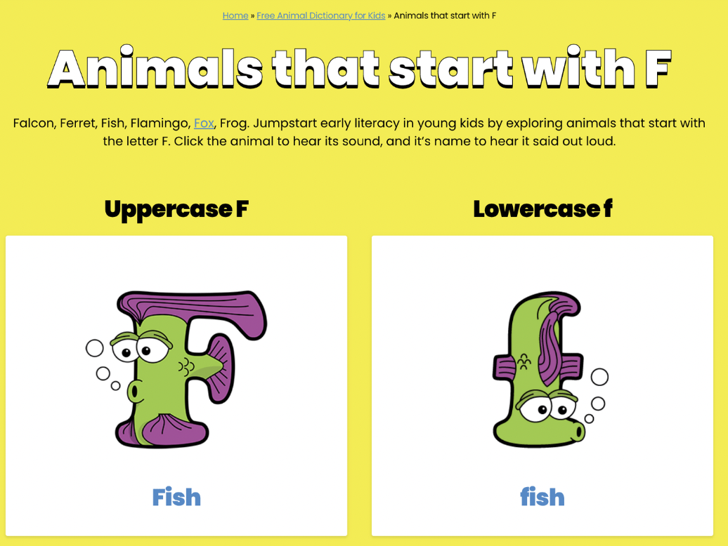 This site way over-performs for the search terms "animals that begins with [letter]" and it deserves it.